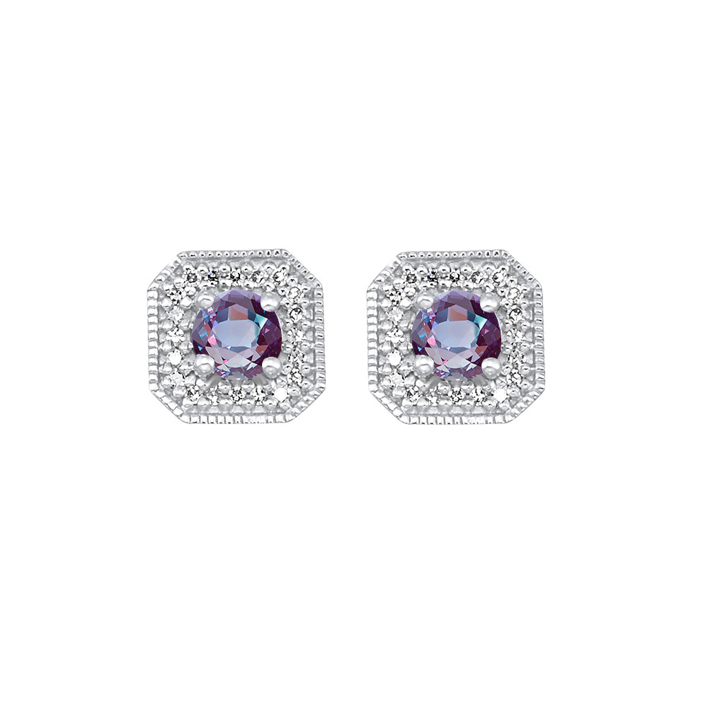 10Kt White Gold Diamond 1/10Ctw & Syn Alexandrite 3/8Ctw Earring